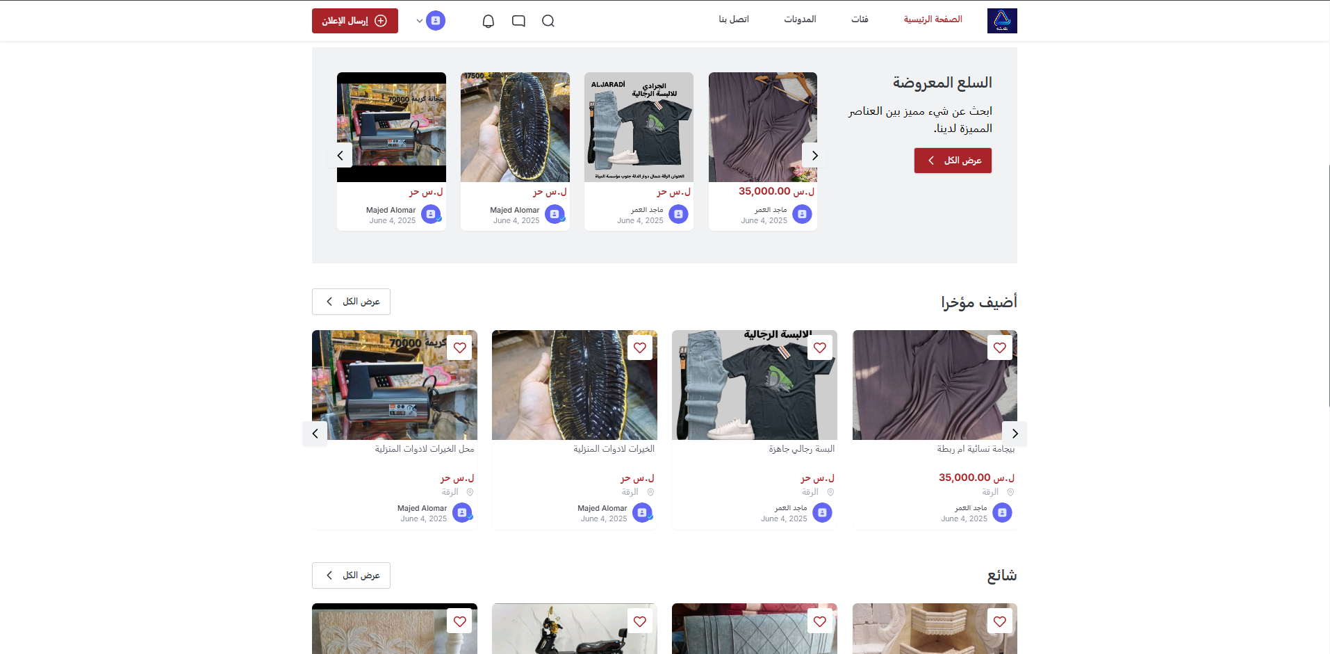 "إعلانكم" هي منصة إعلانات مبوبة حديثة باللغة العربية تتيح للمستخدمين نشر الإعلانات واستعراضها وإدارتها بسهولة، وتشمل أقسامًا مثل الإلكترونيات، العقارات، الوظائف، المركبات والخدمات. تتميز المنصة بلوحة تحكم سهلة الاستخدام، وعرض متجاوب للعناصر، وفلاتر متقدمة، وتحديثات لحظية. وتوفر لوحة الإدارة تحكمًا كاملاً في التصنيفات والإشراف وتتبع الإعلانات بإحصائيات تفصيلية وصلاحيات المستخدمين.