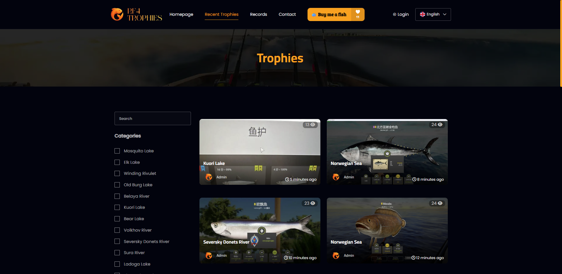 RF4Trophies هي منصة ويب متقدمة مخصصة لمجتمع لاعبي Russian Fishing 4، تعمل على تتبع وتحليل وعرض إنجازات اللاعبين والجوائز (Trophies) بشكل مباشر وفوري.